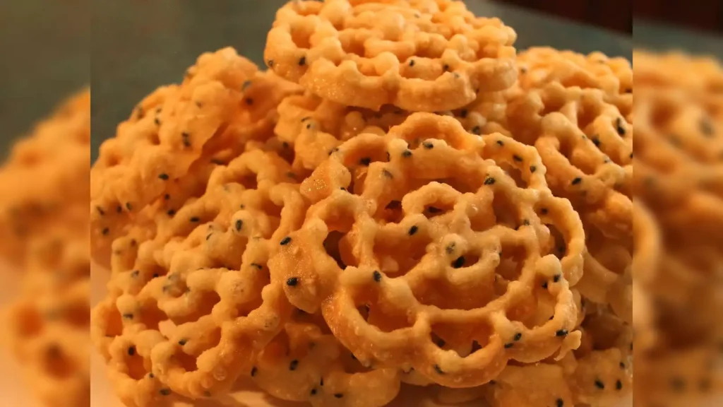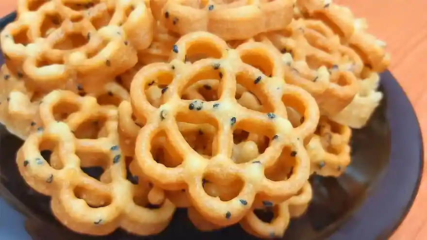 Crispy and flavorful delight of our homemade Achappam, a traditional Kerala snack made with rice flour, coconut milk, and a hint of sesame, fried to golden perfection. Perfect for festive occasions or as a tea-time treat.