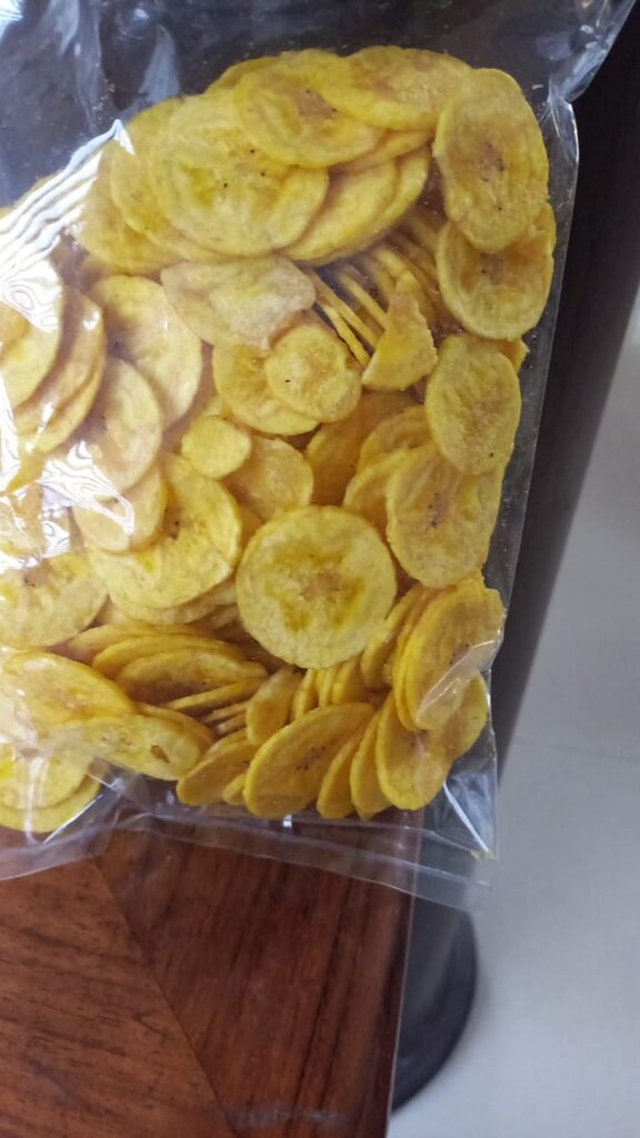 കായ ചിപ്സ് – നല്ല നേന്ത്രക്കായ തെരഞ്ഞെടുത്ത് വെളിച്ചെണ്ണയിൽ ഒട്ടും ഉപ്പു കൂടാതെ ഉപ്പിൽ വിളയണം ഉപ്പേരി എന്ന പഴഞ്ചൊല്ലിനെ തൽക്കാലം നമ്മുക്ക് മറന്ന് ഈ ചിപ്സ് വാങ്ങി കഴിക്കാം. വില 250 ഗ്രാം 130 രൂപ 9544 391 777.