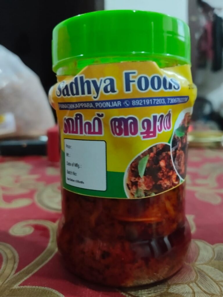Experience the bold and mouthwatering taste of our Homemade Beef Pickle, crafted using tender beef pieces slow-cooked with traditional Kerala spices, garlic, ginger, and curry leaves, then preserved in pure oil for long-lasting flavor.