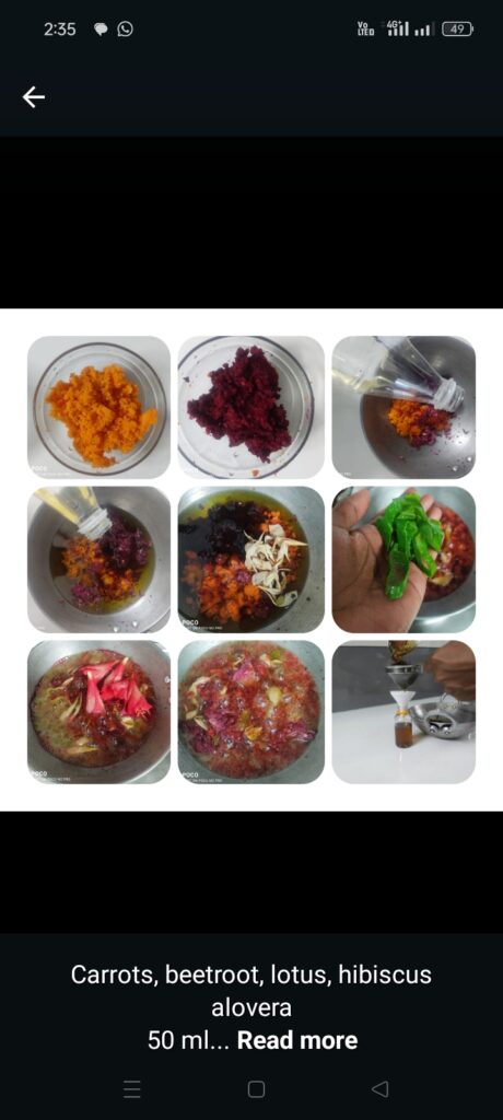 Ingredients :Coconut oil, carrot, beetroot, alovera, hibiscus.