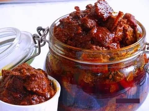 Homemade Fish pickle is a tangy and flavorful delicacy made with marinated fish, vinegar, a blend of aromatic spices, and herbs.