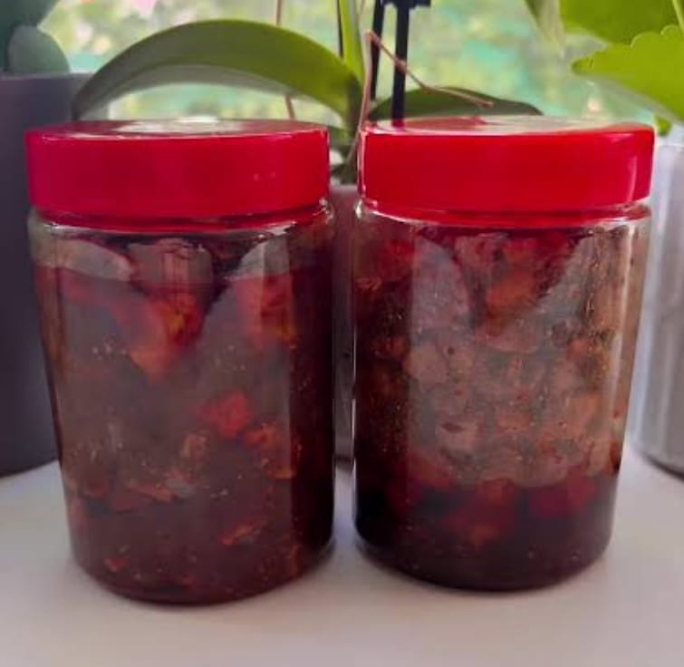 Made with fresh, tender tuna pieces, slow-cooked in a rich blend of Kerala spices, tangy vinegar, and aromatic seasonings. This fiery, flavour-packed pickle is the perfect side for rice, chapati, or even bread.