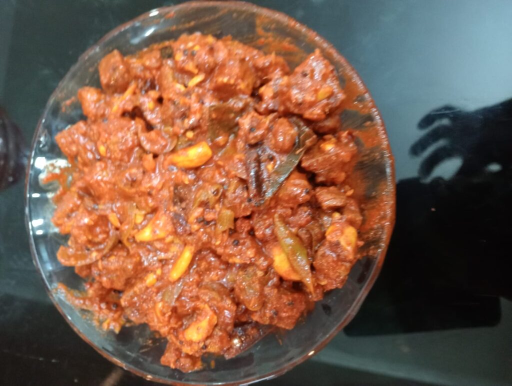 The fried fish pieces are cooked in a rich, spicy masala made from ginger, garlic, green chillies, curry leaves, mustard seeds, and Kerala-style spices, all sautéed in pure coconut oil. Vinegar is added to balance the spice with a tangy taste and to naturally preserve the pickle. The mixture is then slow-cooked to allow the flavors to blend deeply.
