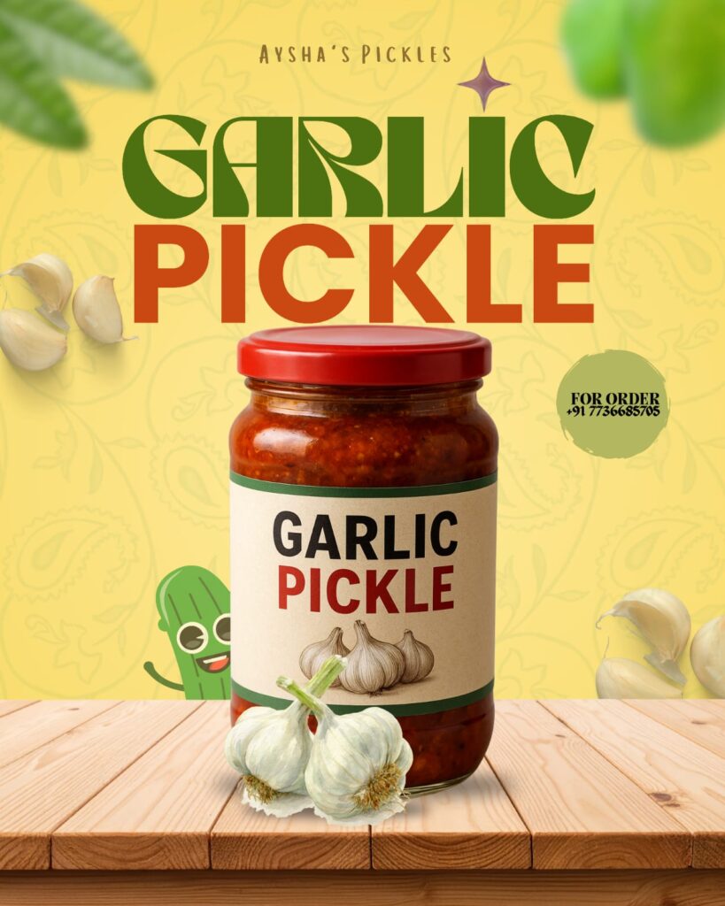 Enjoy the bold and aromatic flavor of our Garlic Pickle, prepared with sun-selected garlic pods, premium spices, and pure edible oil. A perfect side dish that enhances the taste of any meal.