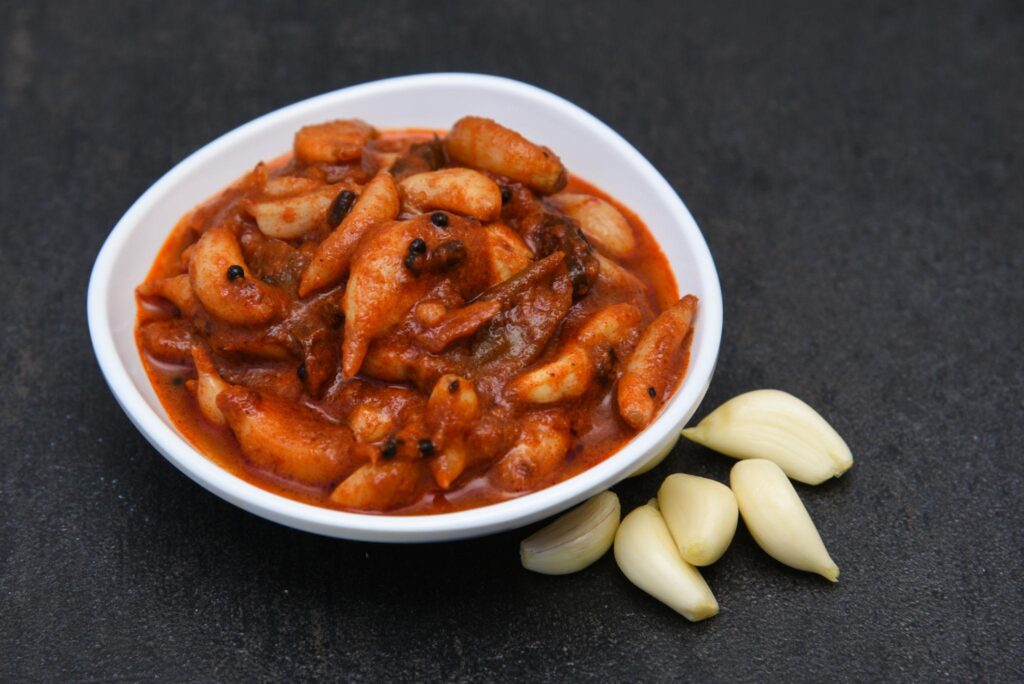 Homemade Garlic Pickle is a bold, spicy, and aromatic delicacy made with fresh whole garlic cloves and traditional Indian spices. The garlic is gently cooked to remove rawness, then slow-fried and blended with red chilli powder, mustard seeds, fenugreek, ginger, curry leaves, and preserved in flavorful oil.