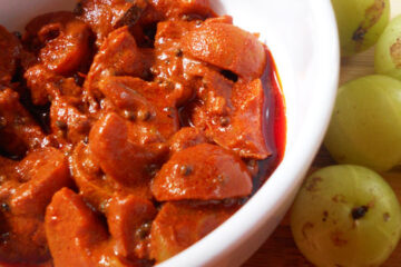 Homemade Gooseberry Pickle, made from fresh,handpicked gooseberries and a blend of traditional spices. A perfect companion for every dish.
