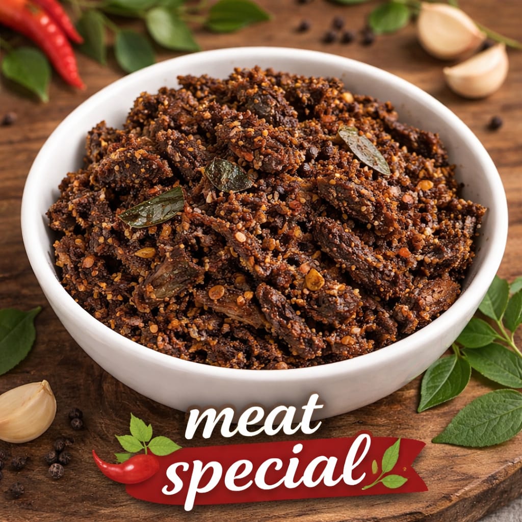 Description : Experience the ultimate convenience without compromising on tradition. Our Ready-to-Eat Idiyirachi brings the deep, smoky essence of Kerala’s heritage directly to your plate. Perfectly seasoned and expertly pounded, this dish is a masterpiece of spice and texture, prepared for those who crave authentic flavors in an instant.