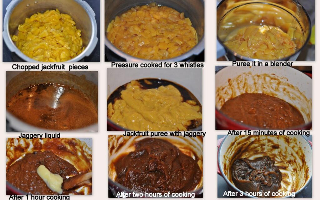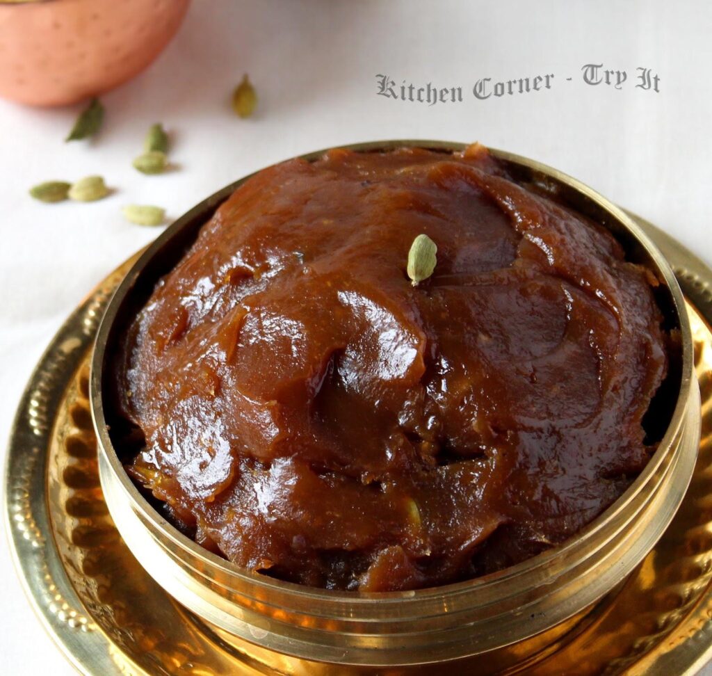 This dish is made by cooking finely chopped or mashed ripe jackfruit pulp with jaggery over a low flame. The mixture is continuously stirred until it thickens into a dark brown, glossy paste. A generous amount of coconut oil is added during the process, giving it a smooth texture and enhancing its authentic taste.