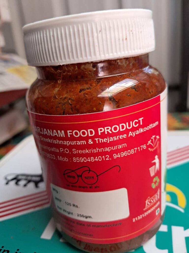 A spicy and tangy Kerala-style raw mango pickle, prepared using handpicked mangoes and a perfect blend of traditional spices. Bursting with authentic homemade flavor — a must-have with rice or curd meals.
