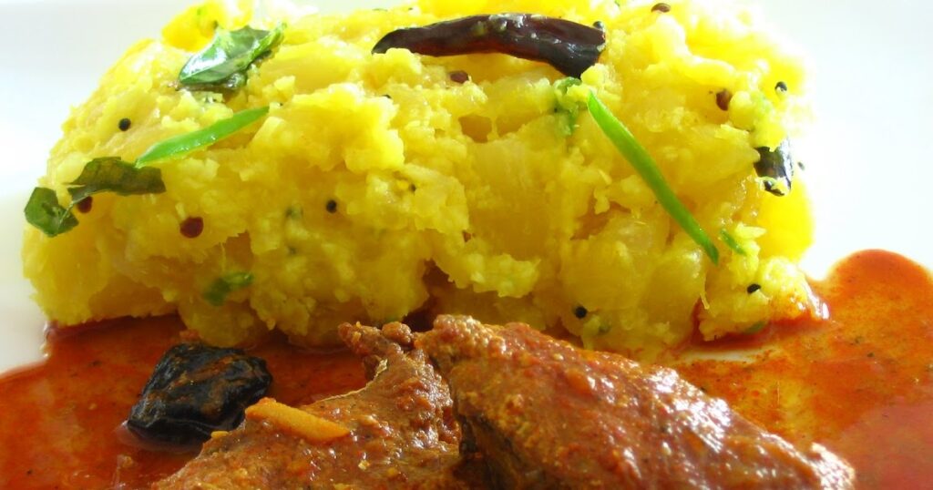 Enjoy the perfect combination of soft-boiled tapioca served with spicy and tangy fish curry, made with fresh tuna or mathi (sardine) and aromatic spices for an authentic taste.