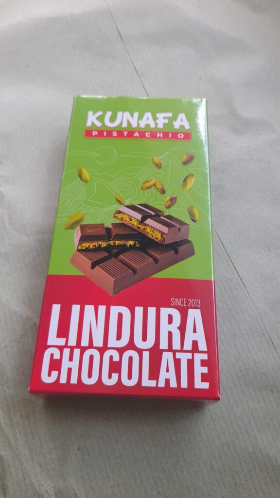 Kunafa PISTACHIO CHOCOLATE is made from finest quality of cocoa beans , pista and kunafa kataifi. No added hydrogenated veg.fat and colour