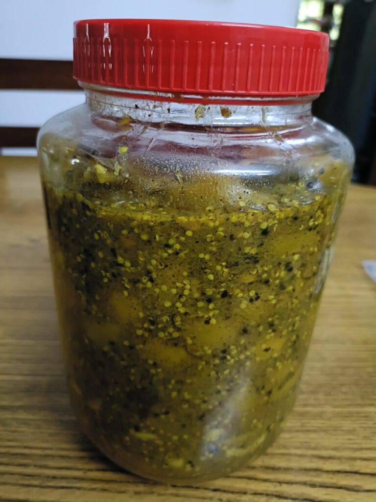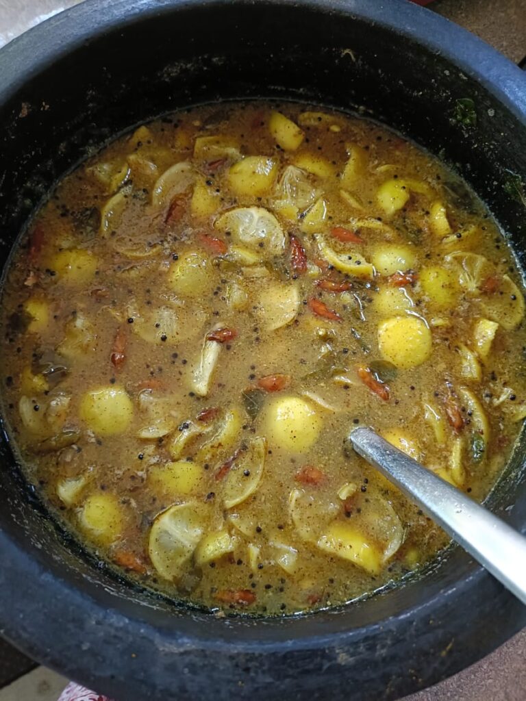Our homemade lemon kanthari pickle is a tangy and flavorful delicacy made with fresh lemons and kanthari, vinegar, a blend of aromatic spices, and herbs. Crafted with 100% homemade ingredients, it offers a perfect balance of spice and aroma, making every bite a delightful experience. This pickle is made using only premium-quality lemons, kanthari and freshly ground homemade spices, ensuring an authentic and rich taste.