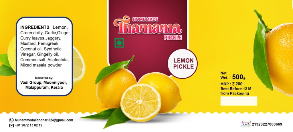 Experience the bold, zesty flavor of our Homemade Lemon Pickle, made with juicy lemons, traditional Kerala spices, and pure oil. A perfect sidekick to rice, dosa, chapati, and more.