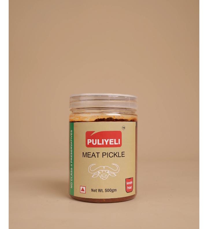 For meat lovers, Puliyeli’s Buffalo Meat Pickle is an extraordinary culinary experience. Tender pieces of buffalo meat are marinated in an aromatic mix of spices and slow-cooked over a wood fire to infuse them with rich, smoky flavors. The meat absorbs the spices deeply, resulting in a pickle that’s robust and tasty.