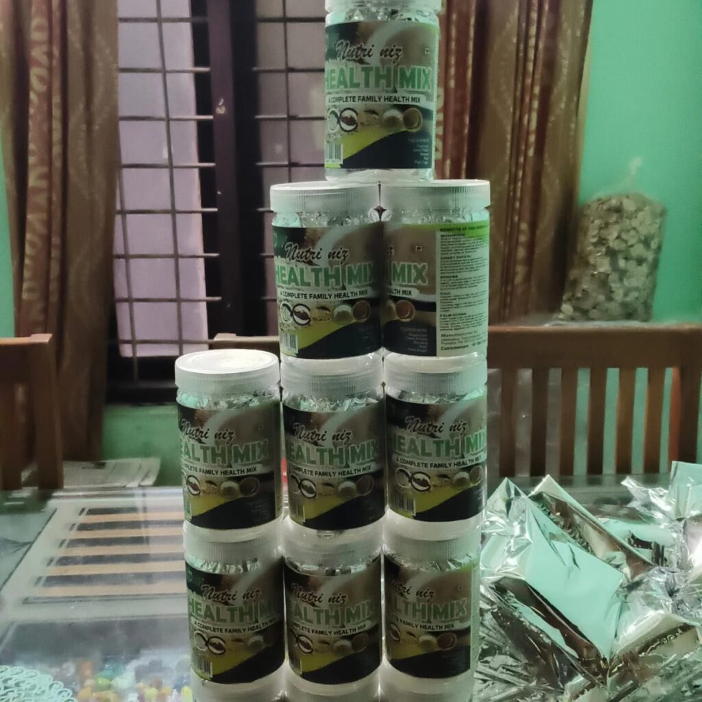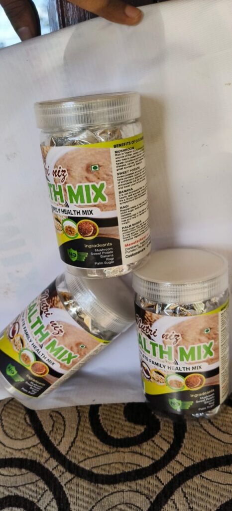 Mushroom health mix, contains mushroom, sweet potato, banana, nuts etc. a complete healthmix with all vitamins , minerals and nutrients.