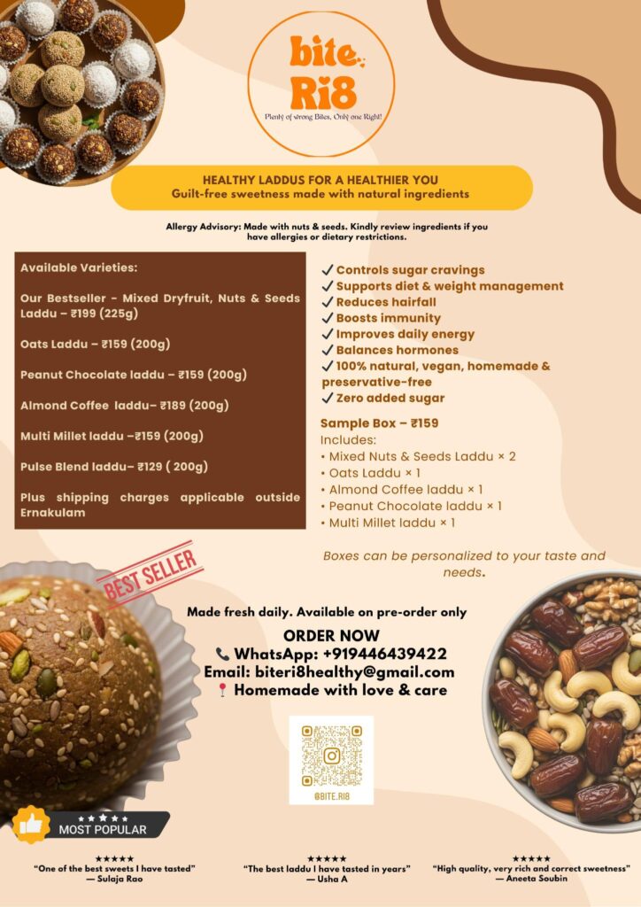 *Nuts and seeds laddus/oats laddus/peanut chocolate/almond coffee/multi millets/pulse blend
