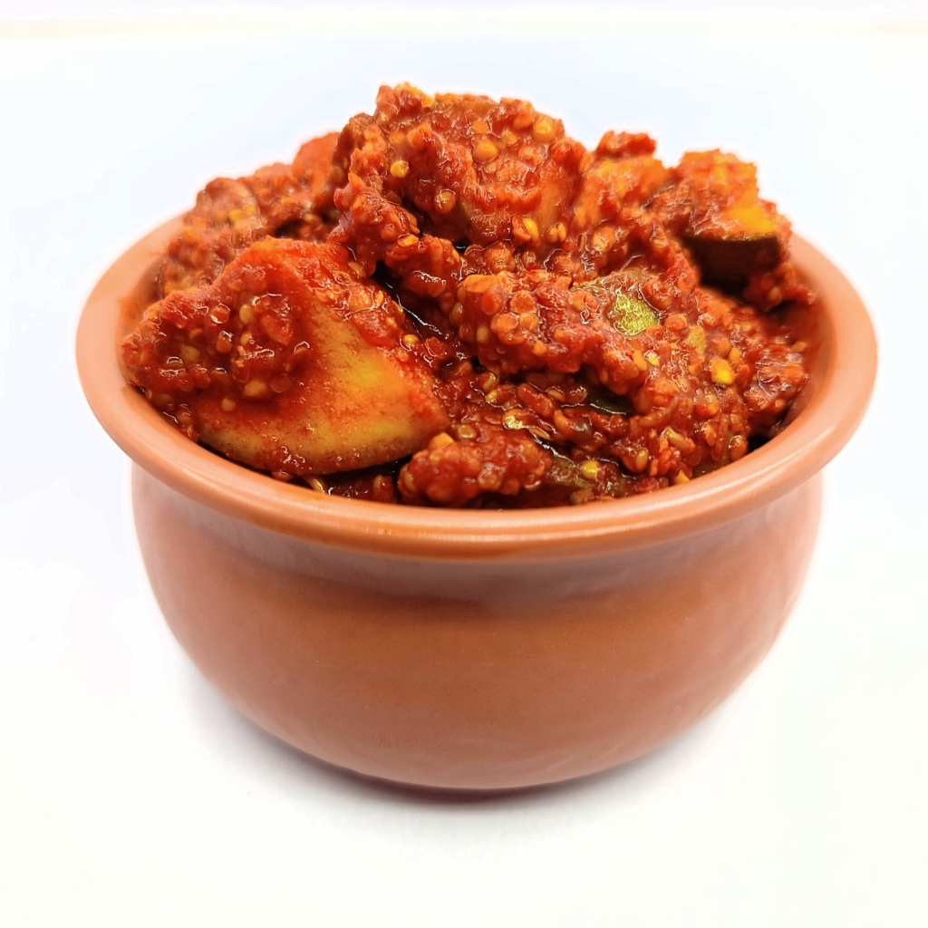 Homemade  Mango Pickle, made from fresh, handpicked mangoes and a blend of traditional spices. This pickle made with pepper instead of red chilly. A perfect companion for every dish.