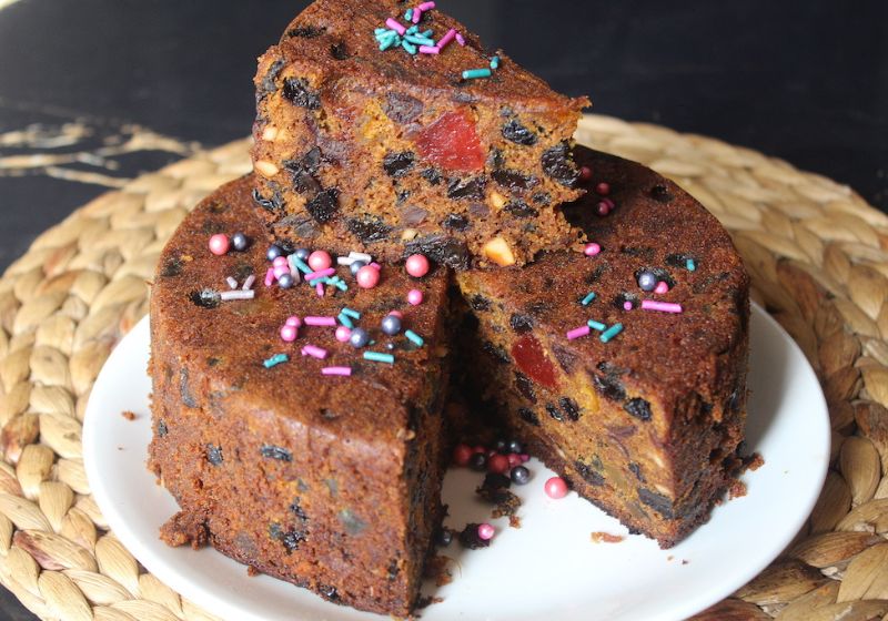 Homemade Plum Cake , a rich and moist delight made with dried fruits, nuts, and a blend of aromatic spices. Perfect for any celebration.