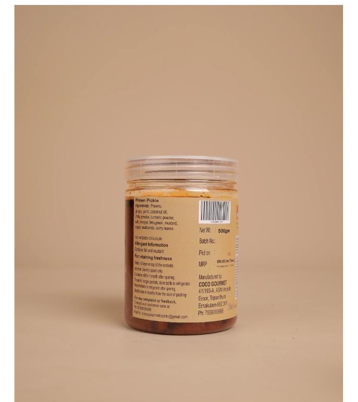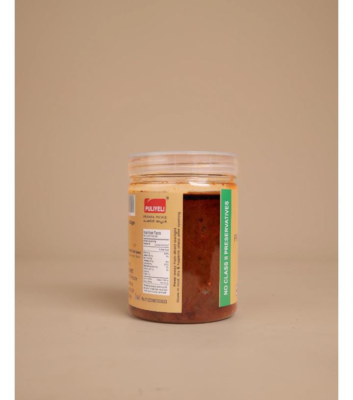 Puliyeli’s Prawns Pickle is a deliciously spicy and tangy creation made from fresh, succulent prawns. These prawns are marinated in a unique blend of spices and slow-cooked over a wood fire, giving them an intense, smoky flavor. The prawns maintain their tender, juicy texture, while the spices create a perfect taste.