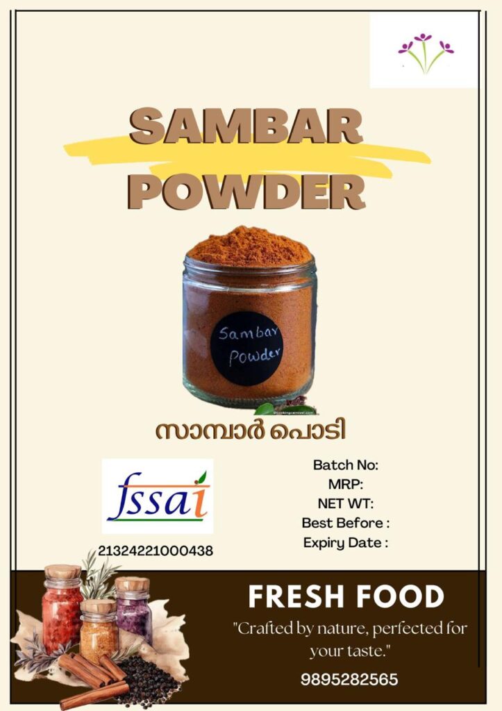 Bring home the authentic taste of Kerala with our Sambar Powder, carefully crafted from premium quality spices, roasted and ground to perfection. This aromatic blend adds rich flavor, vibrant color, and traditional taste to every bowl of sambar.