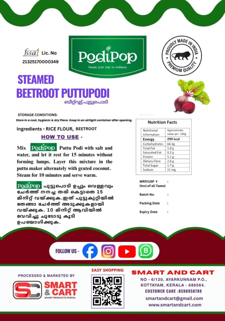 Enjoy a colorful and healthy breakfast with our Steamed Beetroot Puttu Podi, made from premium rice flour blended with fresh beetroot. Naturally sweet, rich in iron, and full of nutrients — a perfect way to start your day!