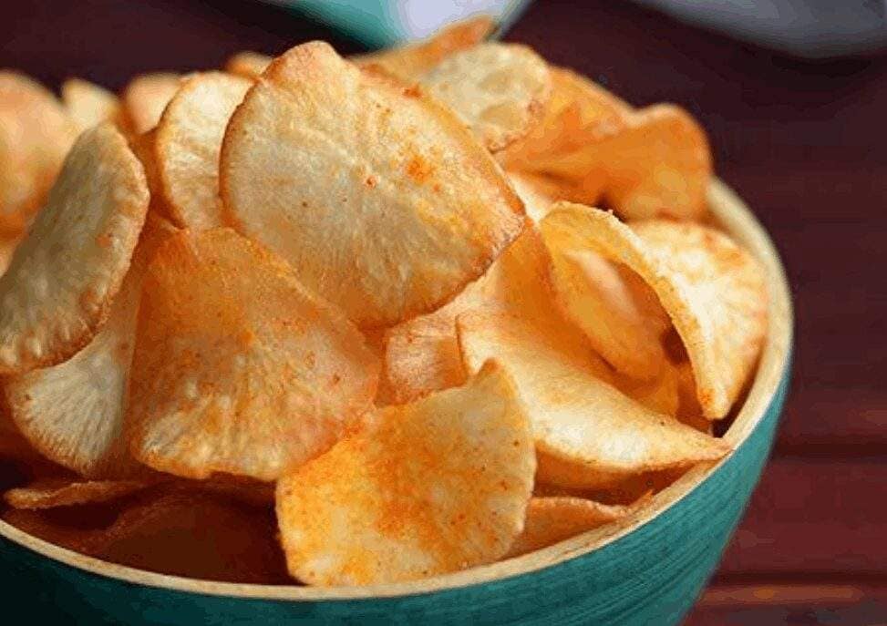 Homemade Tapioca Chips, made from fresh tapioca slices and fried to golden perfection with a touch of salt and spices. A delightful snack for every occasion.