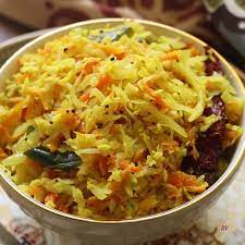 Finely chopped vegetable such as cabbage,or carrot with grated coconut served with traditionally.