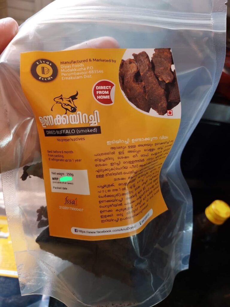 Unakkayirachi smoked (Dried buffalo meat) 500 gm.
