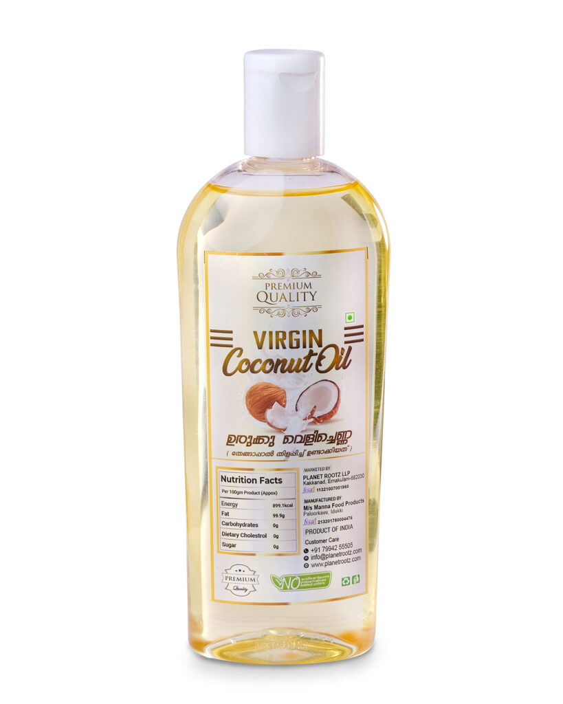 Description: Pure Virgin Coconut Oil suitable for cooking, skincare, and haircare. No preservatives or artificial colours.
